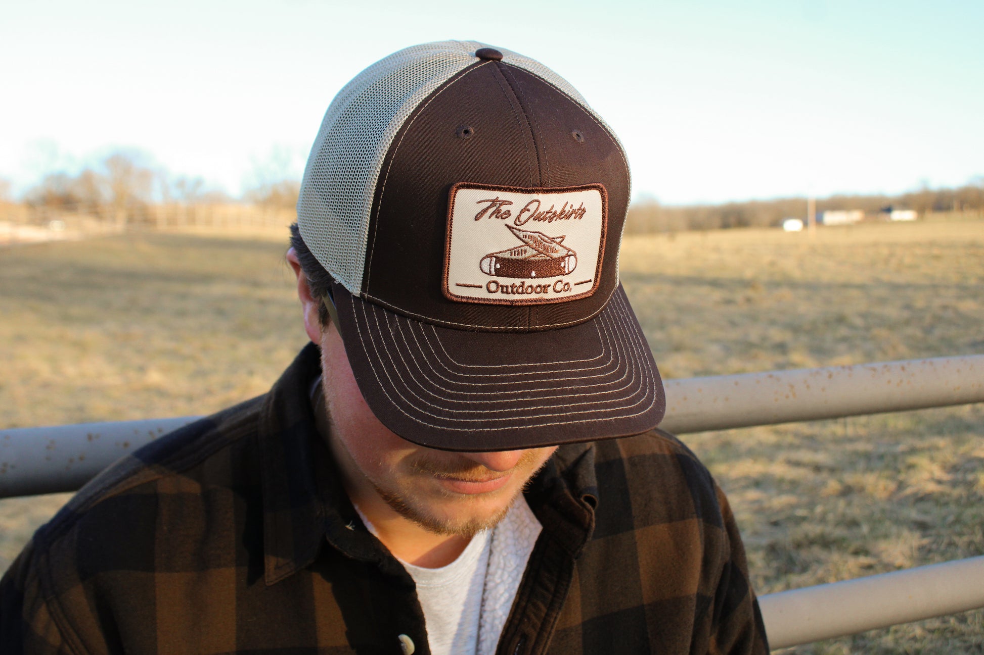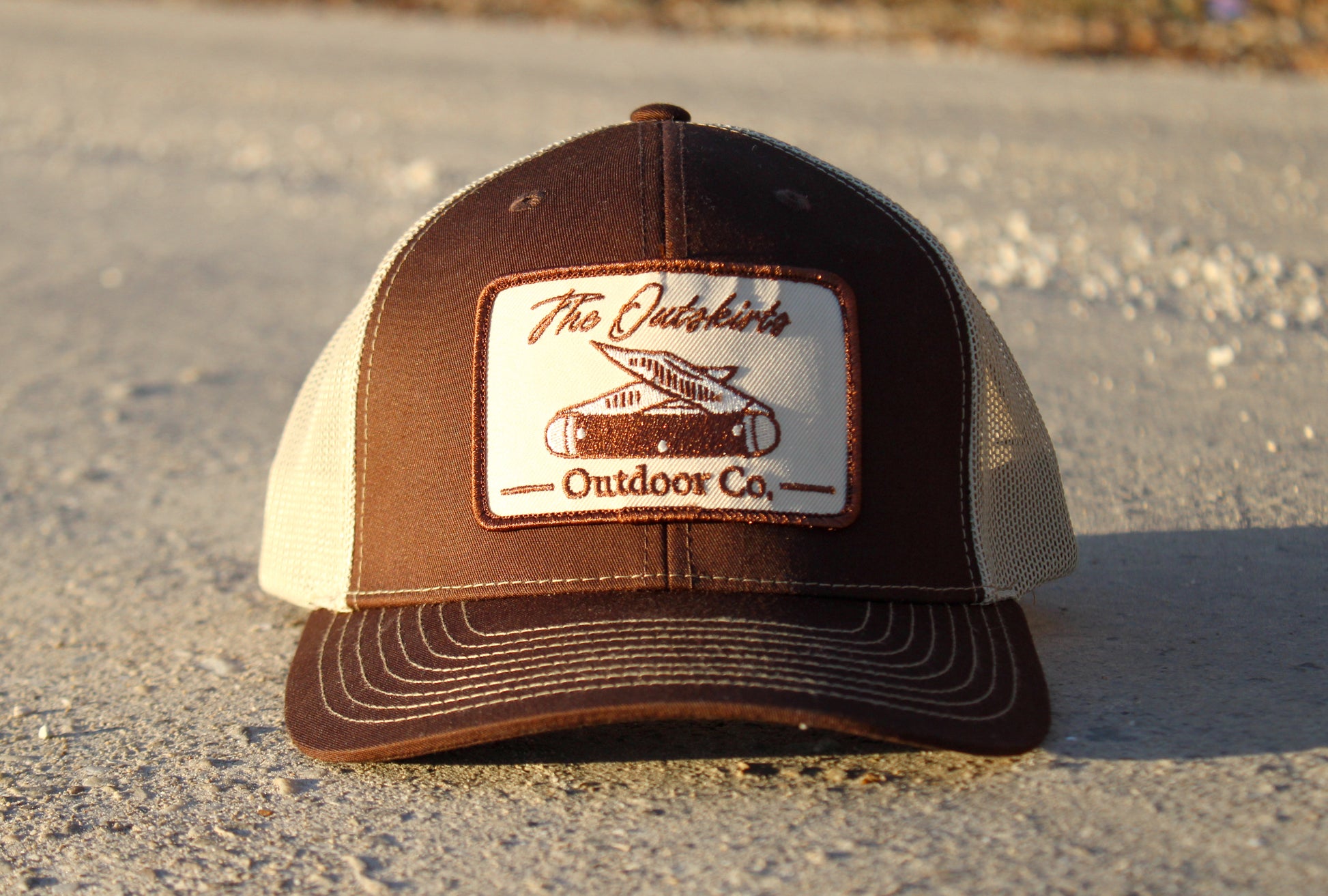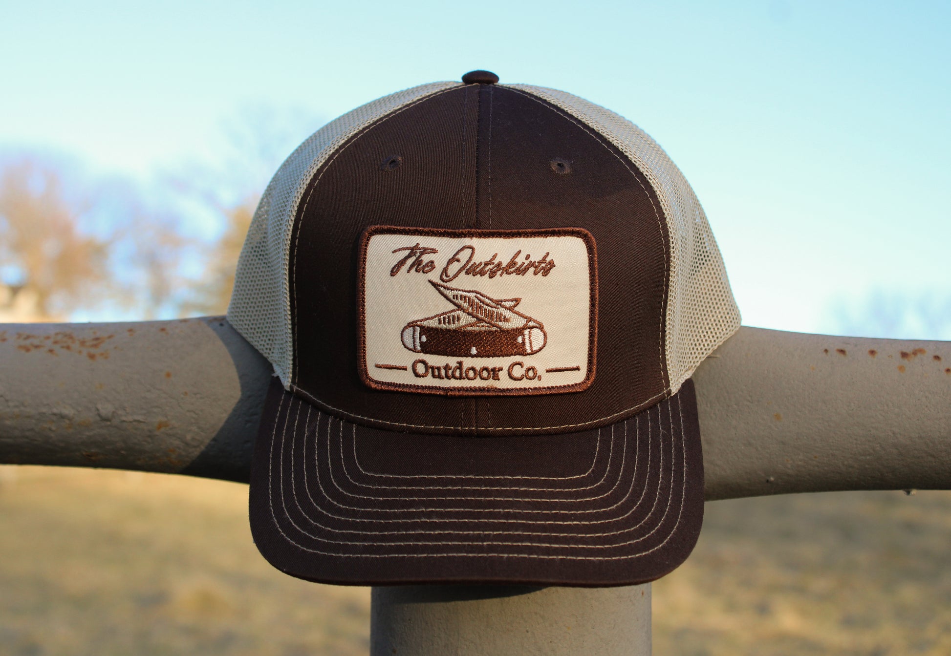 This Richardson 112 hat features a brown base with a tan patch with our embroidered logo.